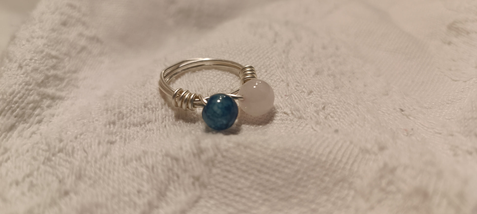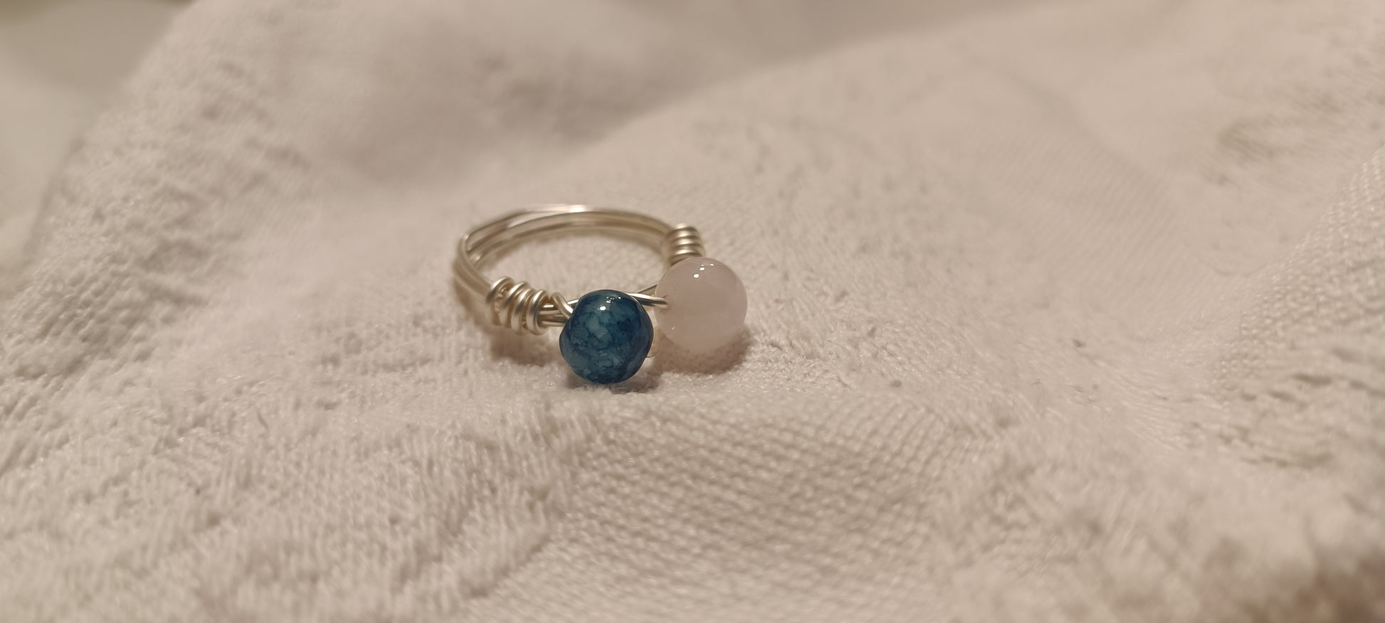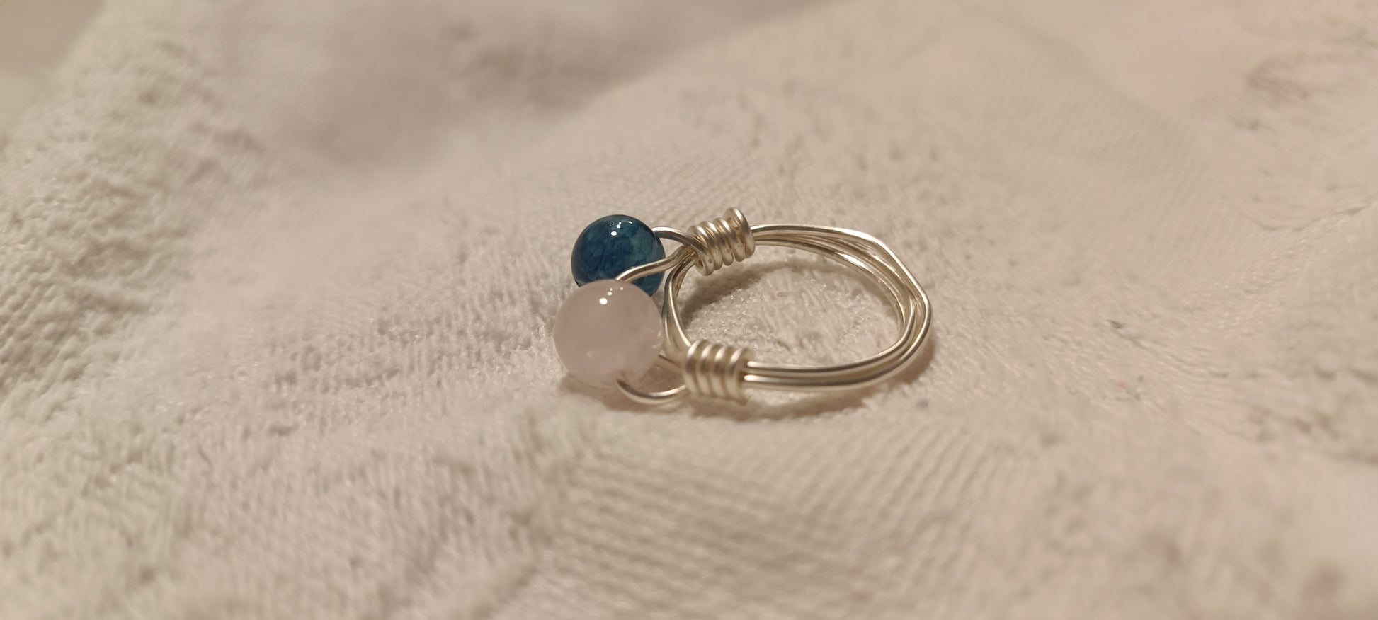 Anillo hecho a mano con técnica de alambrismo . Compuesto por acero inoxidable y piedra natural.