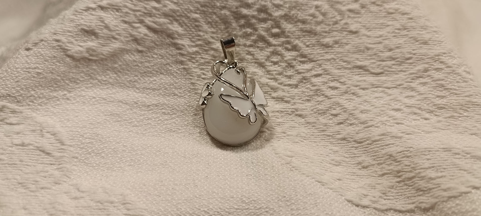 Colgante en forma de lágrima de acero inoxidable con mariposa y piedra natural.