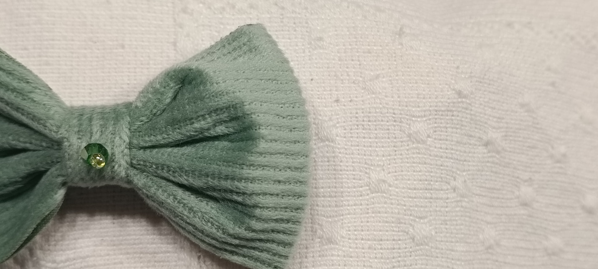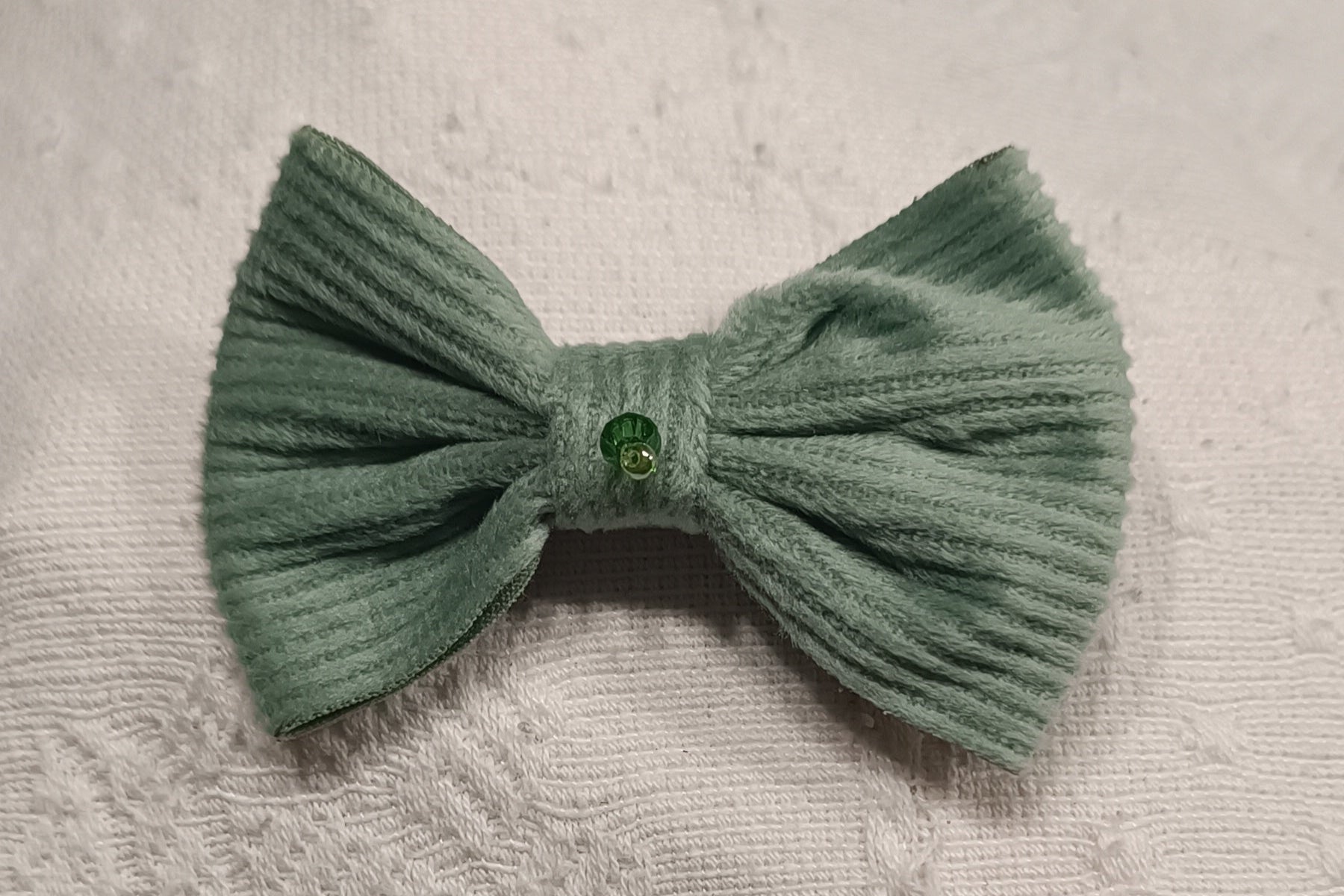 Lazo de pana verde con cristal facetado cosido en medio.