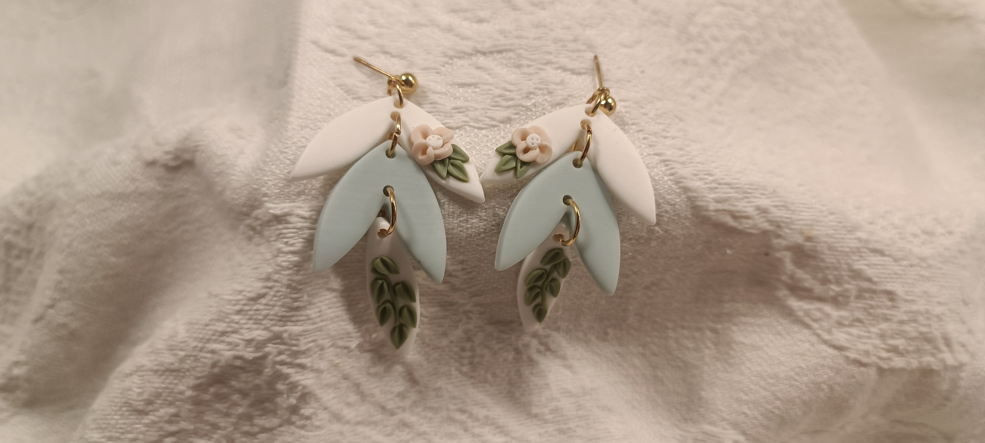 Pendientes de arcilla polimérica elaborados y pintados a mano.