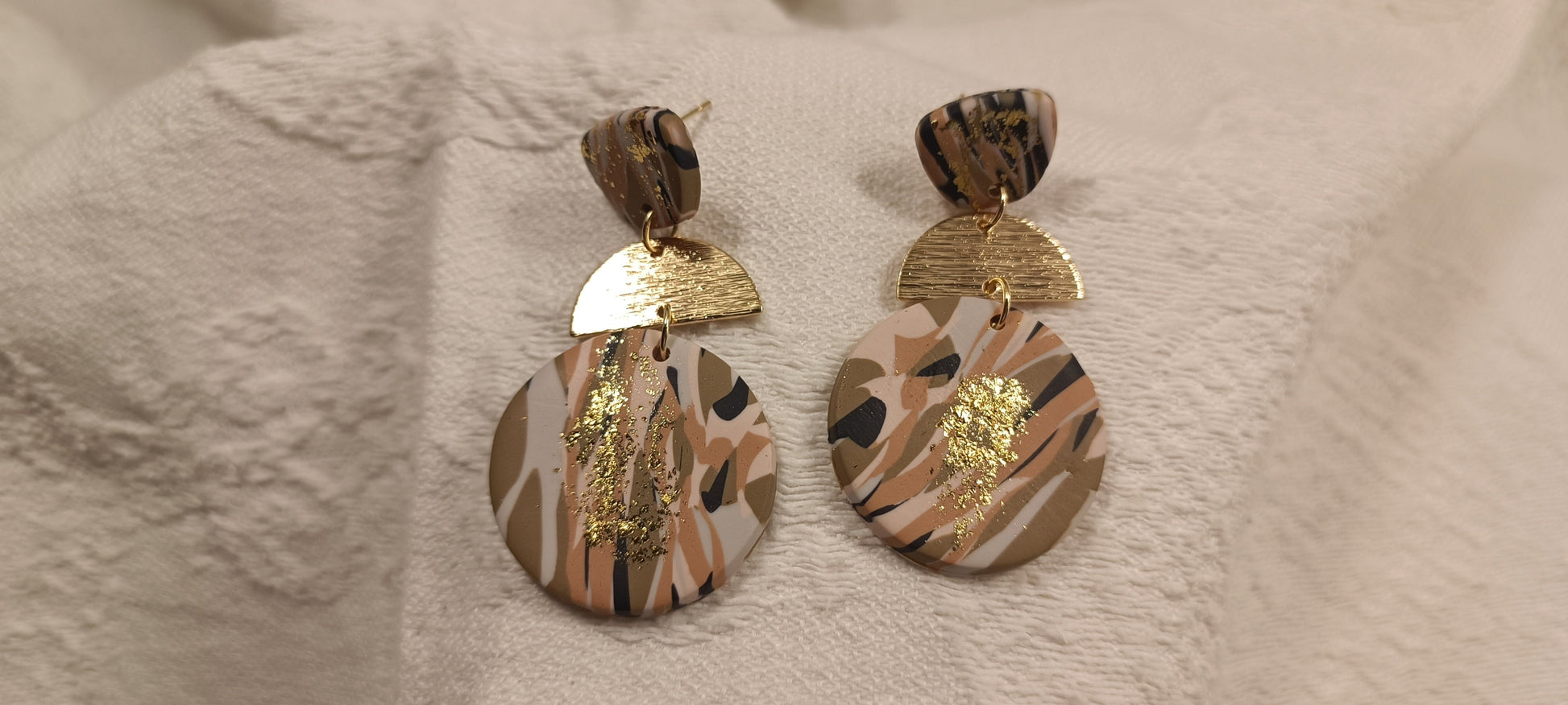Pendientes de arcilla polimérica elaborados y pintados a mano.