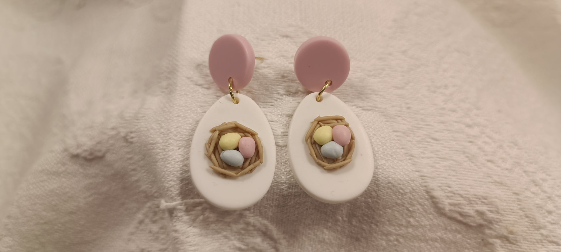 Pendientes de arcilla polimérica elaborados y pintados a mano.