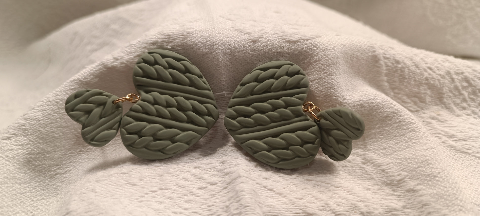 Pendientes de Arcilla Polimérica en forma de corazón en color verde.