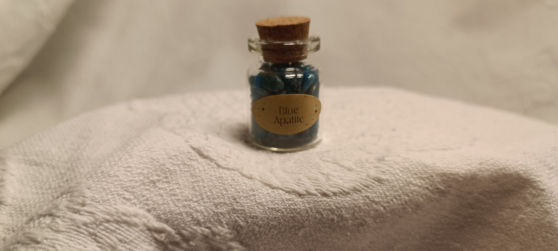 Terapias Energéticas: En el ámbito de la sanación energética, la apatita azul es utilizada en terapias con cristales para desbloquear los chakras, especialmente el chakra de la garganta, que está relacionado con la comunicación y la expresión. Colocar la piedra sobre este chakra puede ayudar a equilibrar la energía y mejorar la habilidad de hablar desde el corazón.